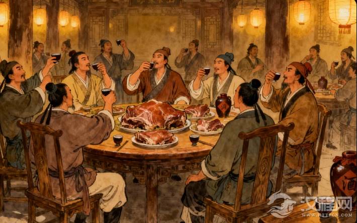 翻开《水浒传》,满纸皆是蒸腾的酒气与淋漓的肉香。从鲁智深拳打镇关西前的那壶酒,到武松过景阳冈的十八碗;从林冲雪夜上梁山时的独饮,到梁山泊大聚义时“大块吃肉,大碗喝酒”的集体狂欢。“酒”与“肉”如同两条粗壮的线索,编织起一百零八位好汉的悲欢离合与命运交响。